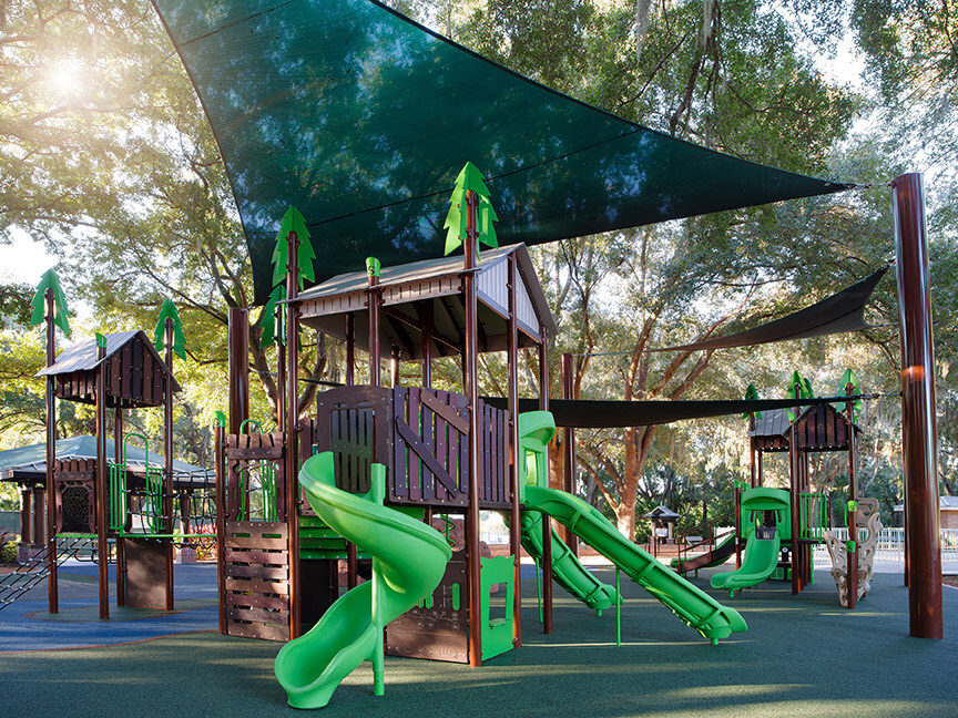 We provide shade sails in commercial, outdoor settings. Our shade sails are not suitable for home or residential use.